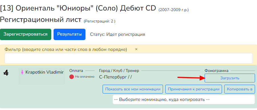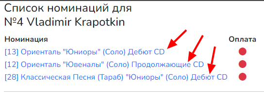 После регистрации вы получаете письмо со ссылками на все номинации, куда вы зарегистрировались.