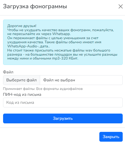 Там в колонке Фонограмма есть кнопка Загрузить.