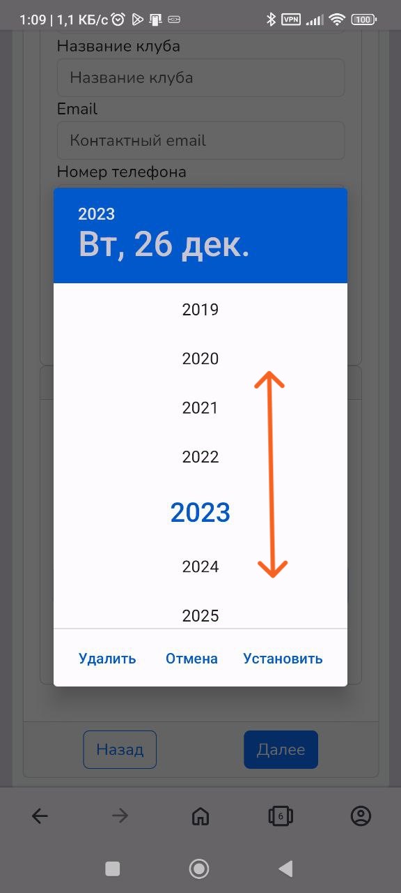 В мобильных браузерах ввод даты осуществляется с помощью календаря.